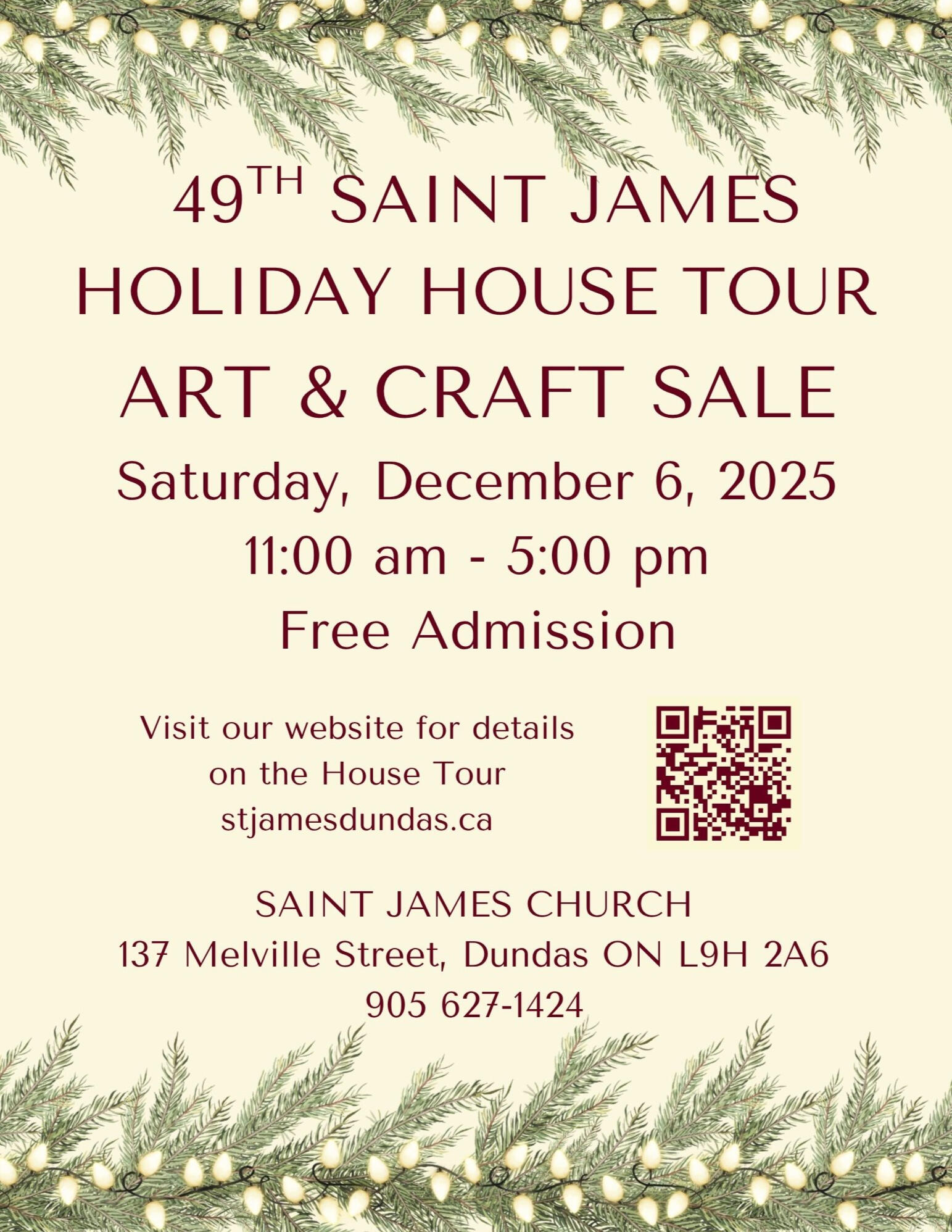 | DECEMBER 6: DICKENS LANE ARTISAN SHOW AND SALE, Free admission, St. James Anglican Church, 137 Melville St., Dundas ON, 49th Holiday House Tour. |